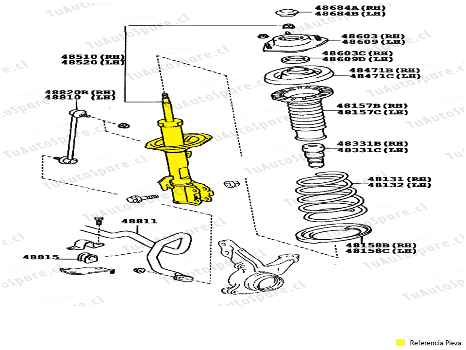 Amortiguador Delantero RAV4 2000-2005, Izquierdo 48520-49325