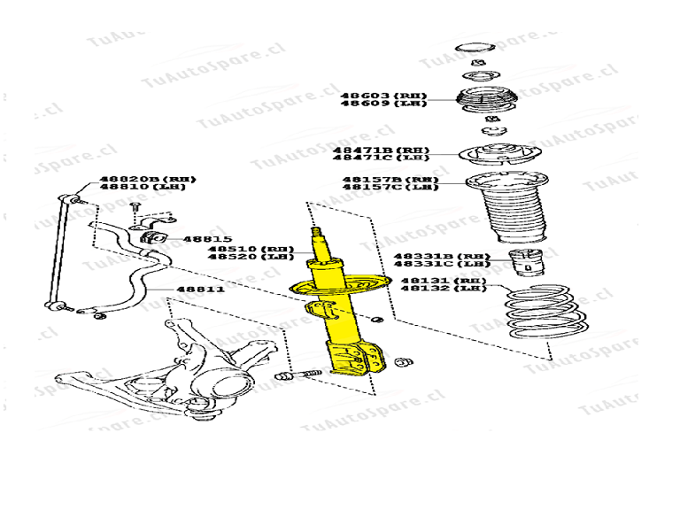 Equivalente: 48520-0D010, 0D030, 0D150, 0D170, 0D171, 0D210, 0D240, 0D250, 52040, 52140, 52510, 52511, 59135