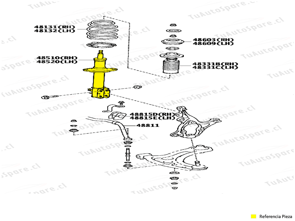 Equivalente: 48510-0D480, 0D490, 0D500, 0D571, 0D572, 0D581, 0D591, 0D592, 0D611, 0D592, 0D530, 0D540