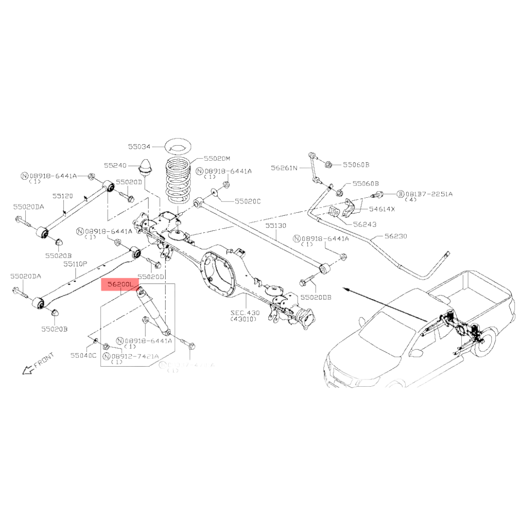Amortiguador Trasero NP300 (4WD) 2015-2020. PAR E6200-4KH7A