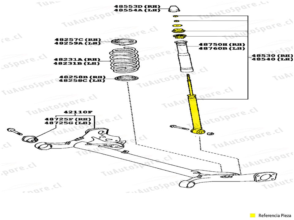 Equivalente: 48530-0D180, 0D310, 0D440, 0D450, 0D480, 52B00, 52C40, 80283, 80384