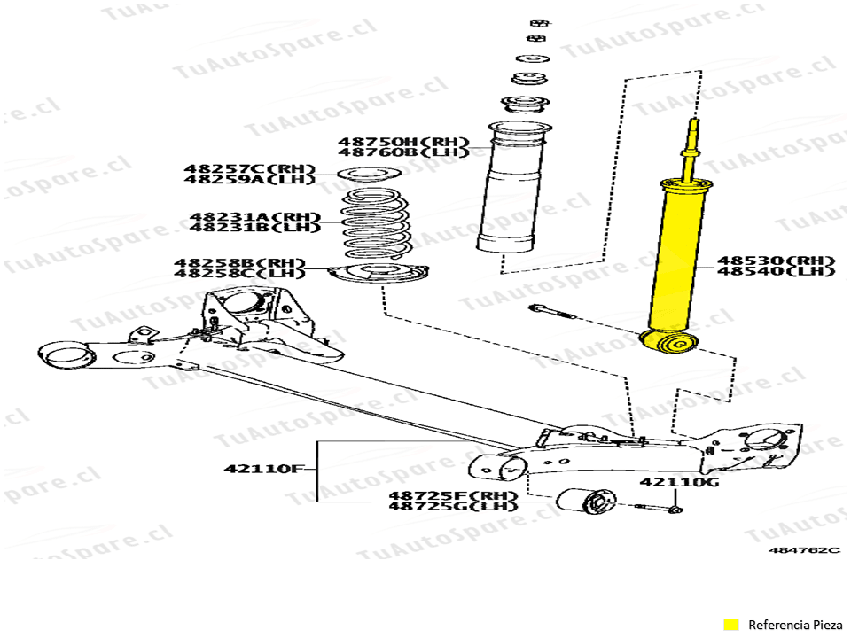 Amortiguador Trasero YARIS 2014-2018, Izq/Der 48530-0D570