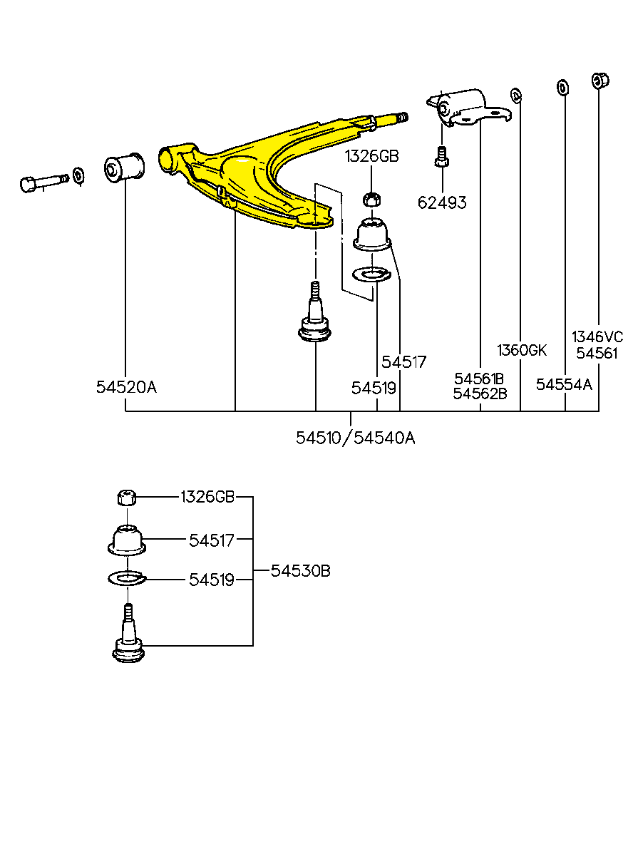 Bandeja Inferior Delantero ELANTRA 1996-2000. PAR 54500-29000, 54501-29000