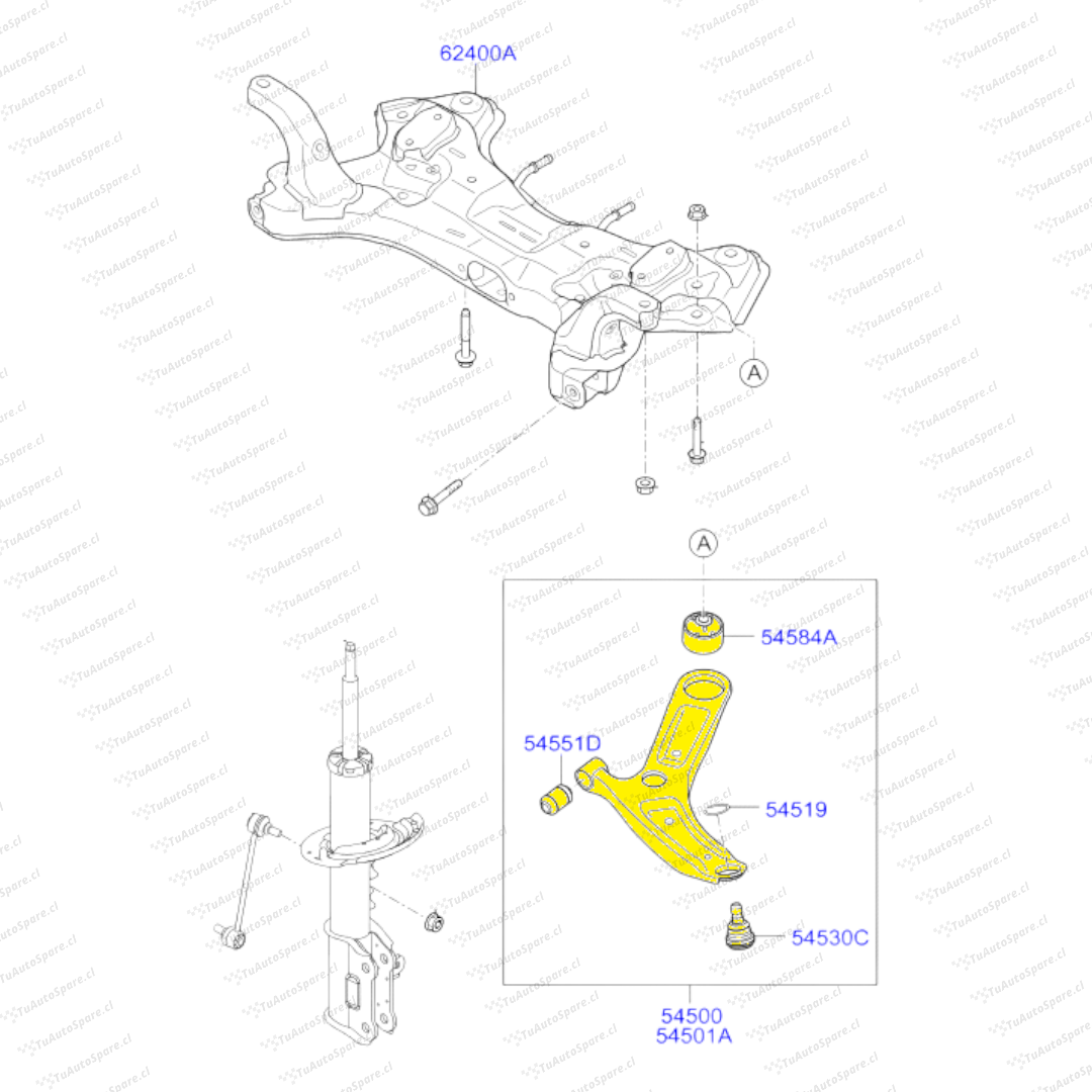 Bandeja Inferior Delantero i10 2015-2023, Derecho 54501-B4000