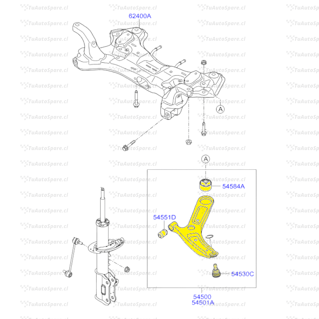 Bandeja Inferior Delantero i10 2015-2023. PAR 54500-B4000, 54501-B4000