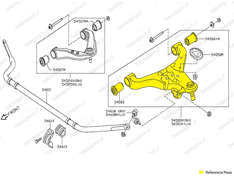 Bandeja Inferior Delantero NAVARA 2007-2016. PAR 54500-EB70A, 54501-EB70A