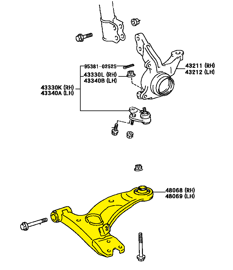 Bandeja Inferior Delantero RAV4 2000-2005, Izquierdo 48069-42040