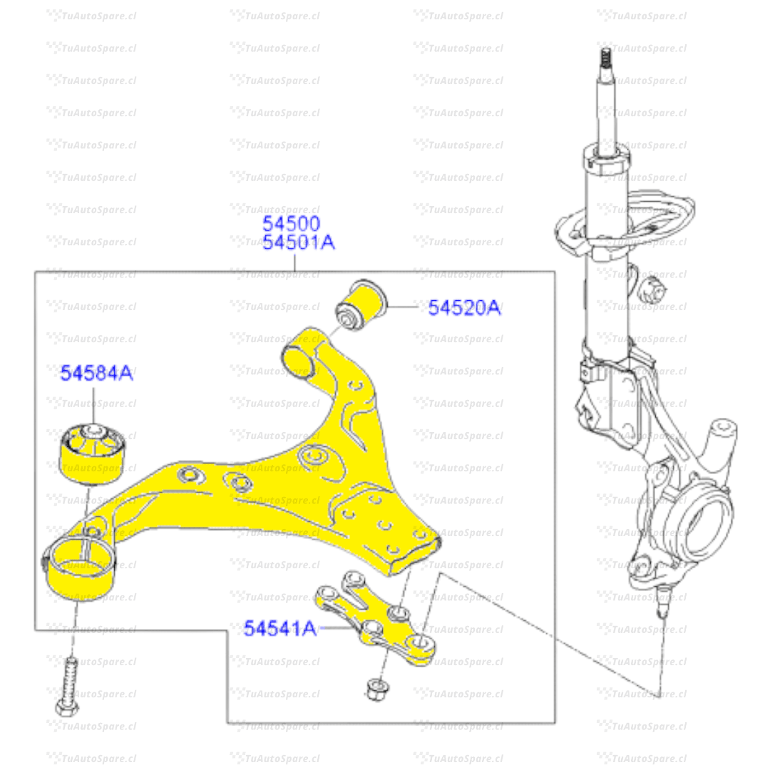 Bandeja Inferior Delantero TUCSON 2004-2010, Derecho 54501-2E001