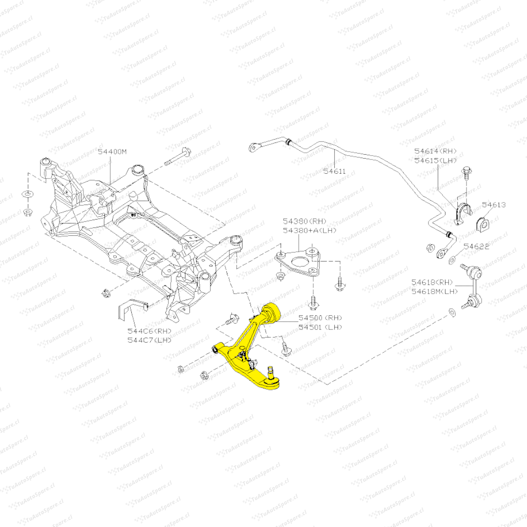 Bandeja Inferior Delantero X-TRAIL 2002-2011, Izquierdo 54501-8H310
