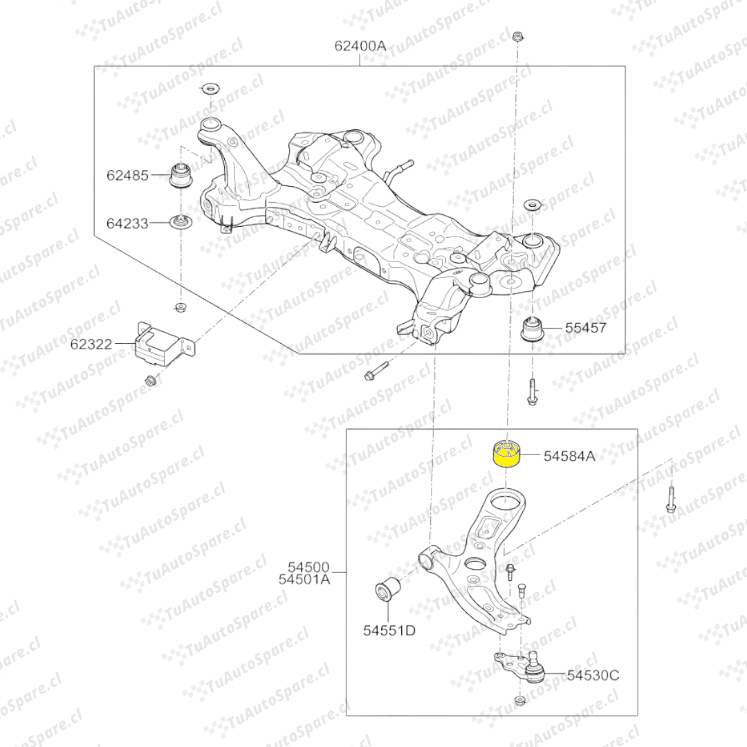 Buje Bandeja Inferior Delantero CARENS 2013-2019, Pos G 54584-4H000