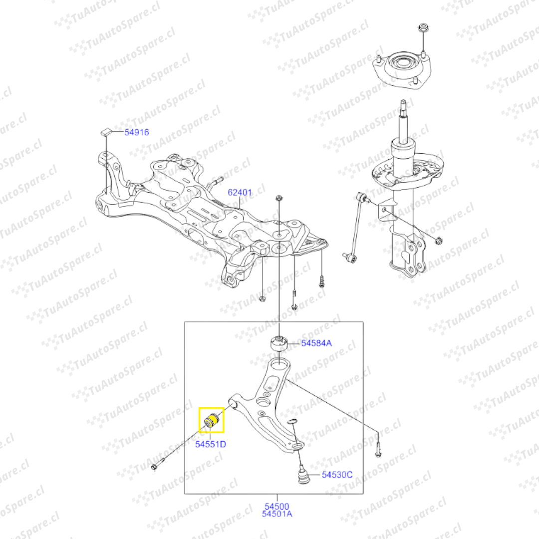 Buje Bandeja Inferior Delantero CRETA 2016-2020, Pos A 54551-3X000