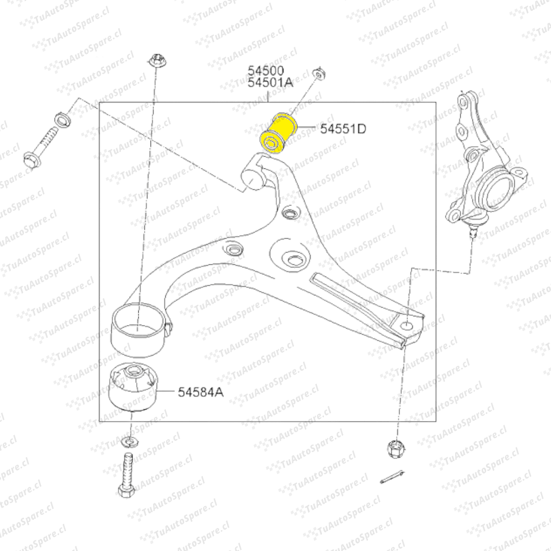 Buje Bandeja Inferior Delantero RIO 2006-2023, Pos A 54551-1J000