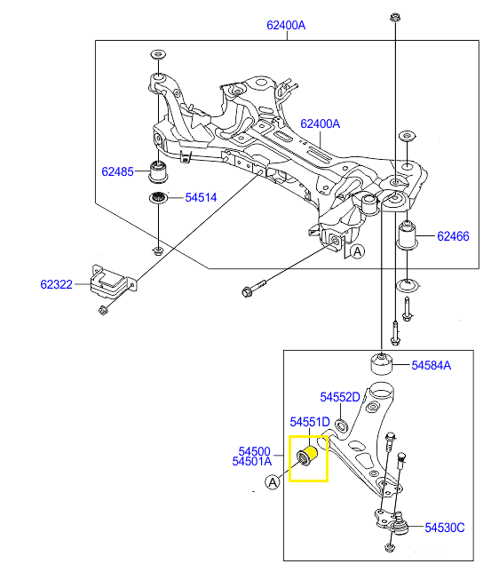 Buje Bandeja Inferior Delantero SORENTO 2013-2021, Pos A 54551-2E000