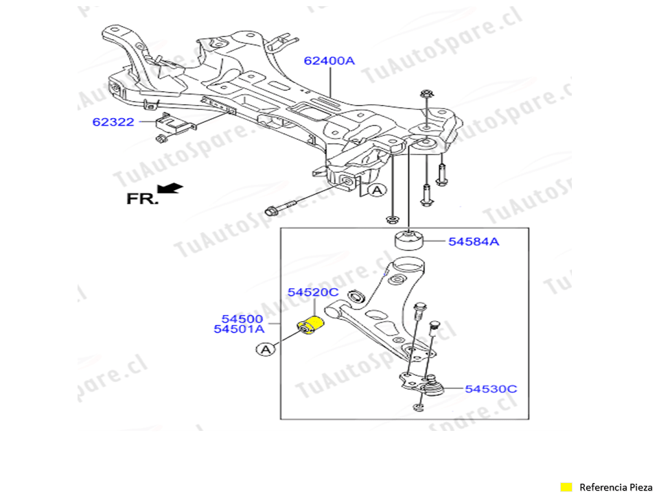 Buje Bandeja Inferior Delantero SPORTAGE 2011-2014, Pos A 54551-2S000