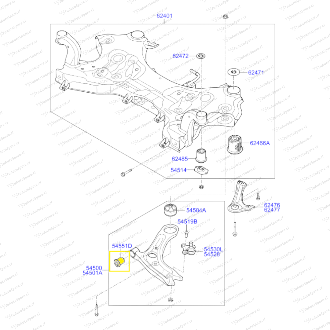 Buje Bandeja Inferior Delantero TUCSON 2013-2021, Pos A 54551-2E000