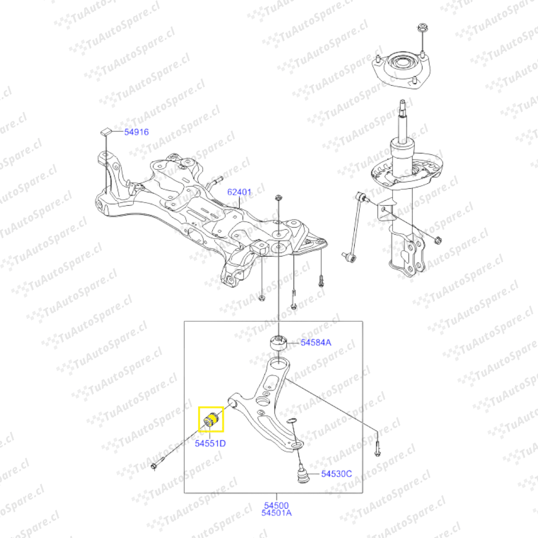Buje Bandeja Inferior Delantero VELOSTER 2011-2021, Pos A 54551-3X000