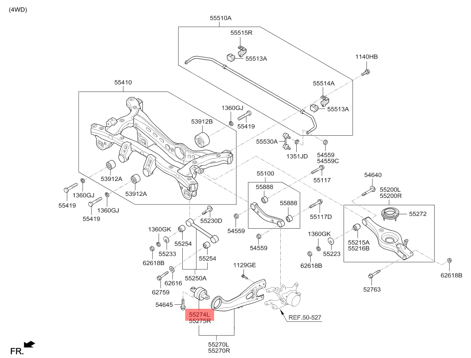 Buje Bandeja Inferior Trasero TUCSON (76,6mm) 2010-2011, Izq/Der 55274-2S000