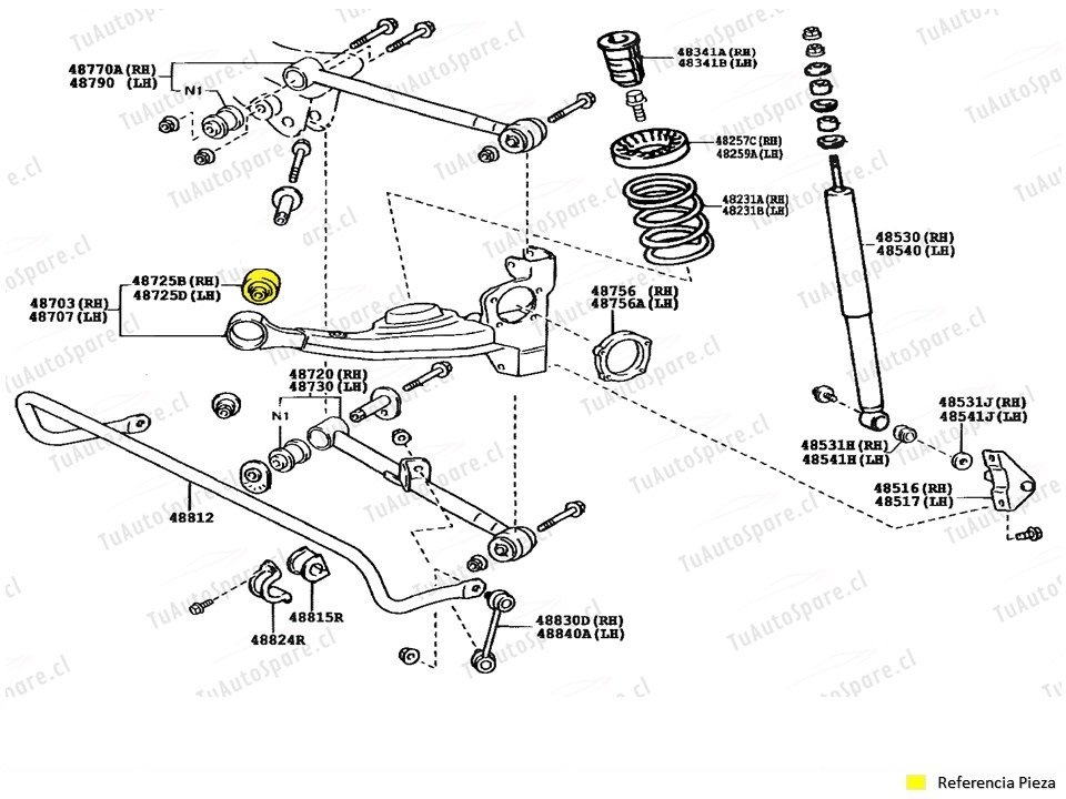 Buje Bandeja Trasero RAV4 2000-2005, Izq/Der 48725-42080