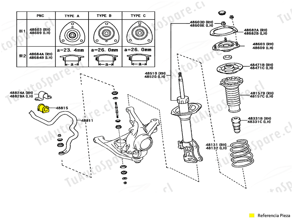 Buje Barra Delantero YARIS 2000-2005, Izq/Der 48815-52030