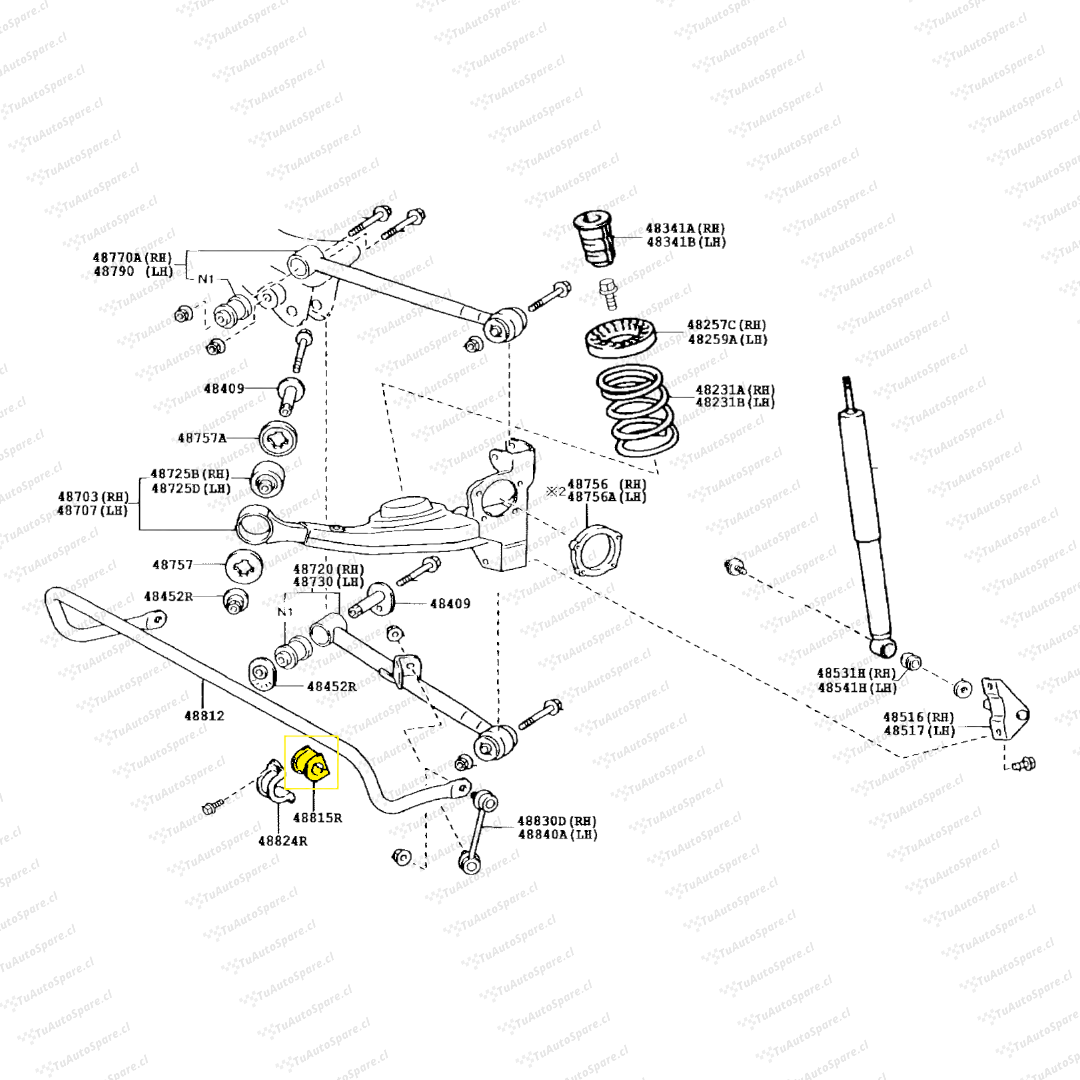 Buje Barra Trasero RAV4 (2.0) 2000-2005, Izq/Der 48815-42040