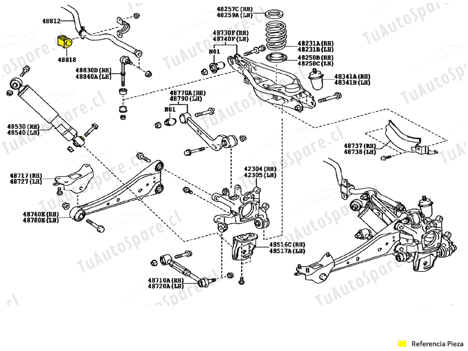 Buje Barra Trasero RAV4 2006-2012, Izq/Der 48818-42010