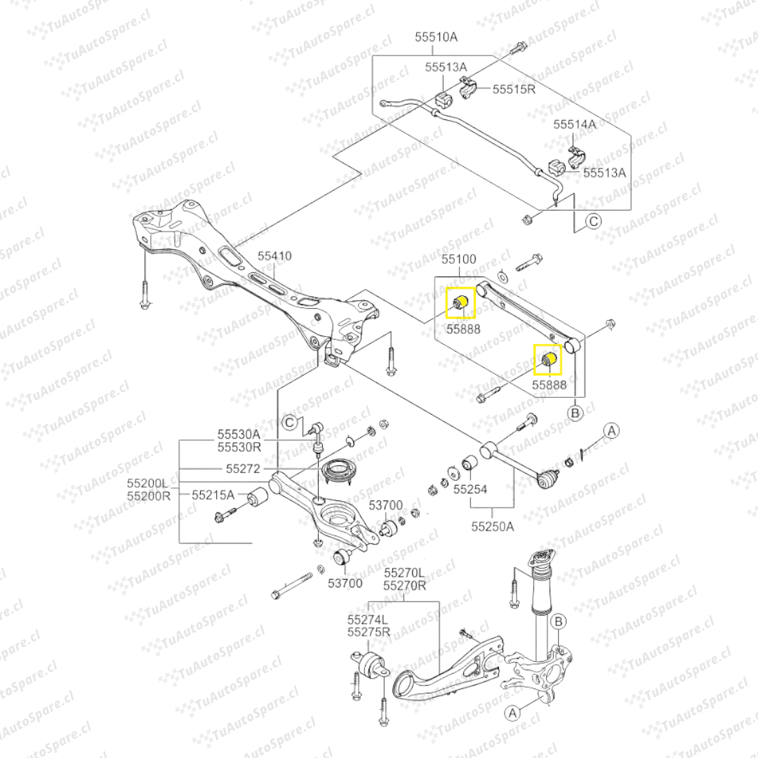 Buje Brazo Superior Trasero SPORTAGE (4WD) 2011-2016, Izq/Der 55118-2S100