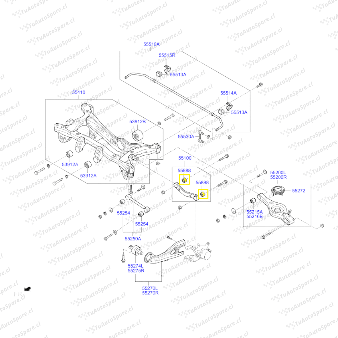 Buje Brazo Superior Trasero TUCSON (4WD) 2010-2015, Izq/Der 55118-2S100