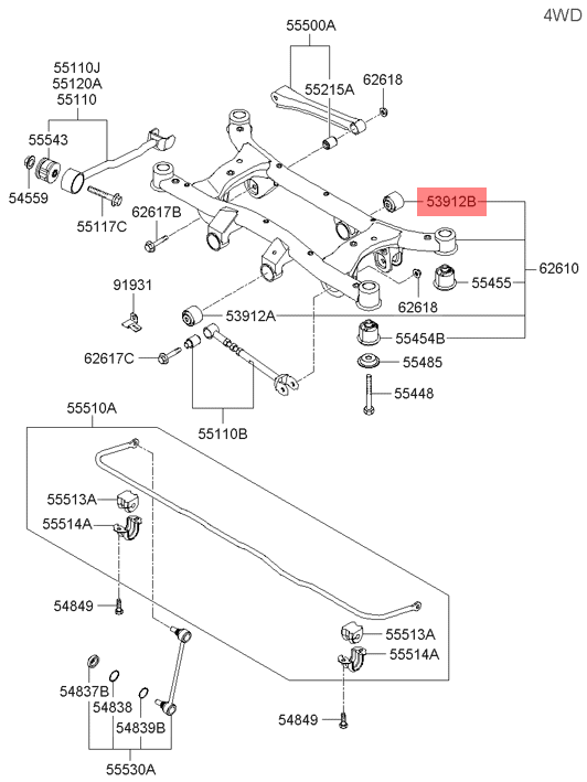 Buje Eje Diferencial Trasero TUCSON (4WD) 2004-2010, Posterior 53912-2E200