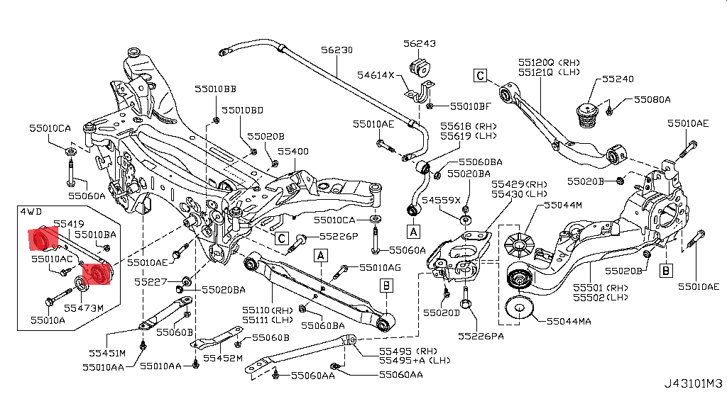 Buje Eje Diferencial Trasero X-TRAIL (4WD) 2010-2014, Unidad 55419-JG200B