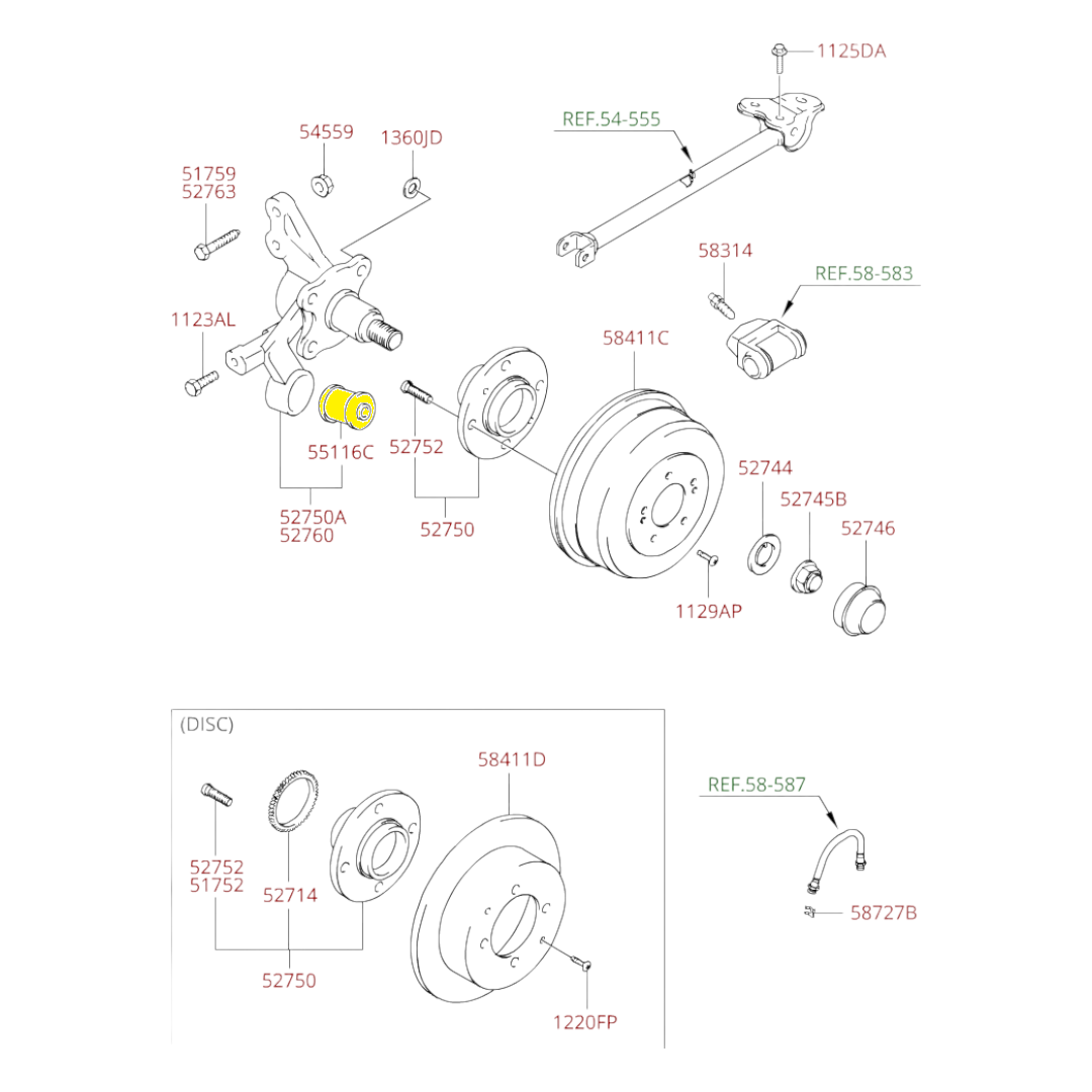 Buje Muñon Trasero ELANTRA 1996-2006, Izq/Der 55116-29000