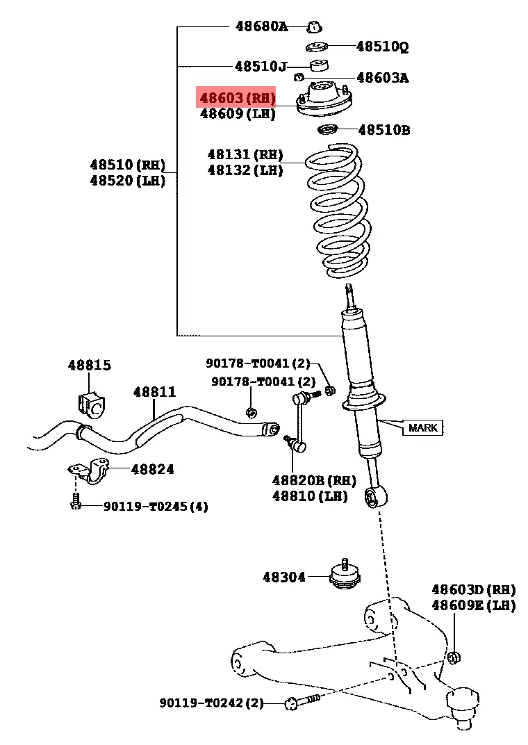 Equivalente: 48609-0K050, 0K070, 0K080, 0K120, 35010, 60030, 60100