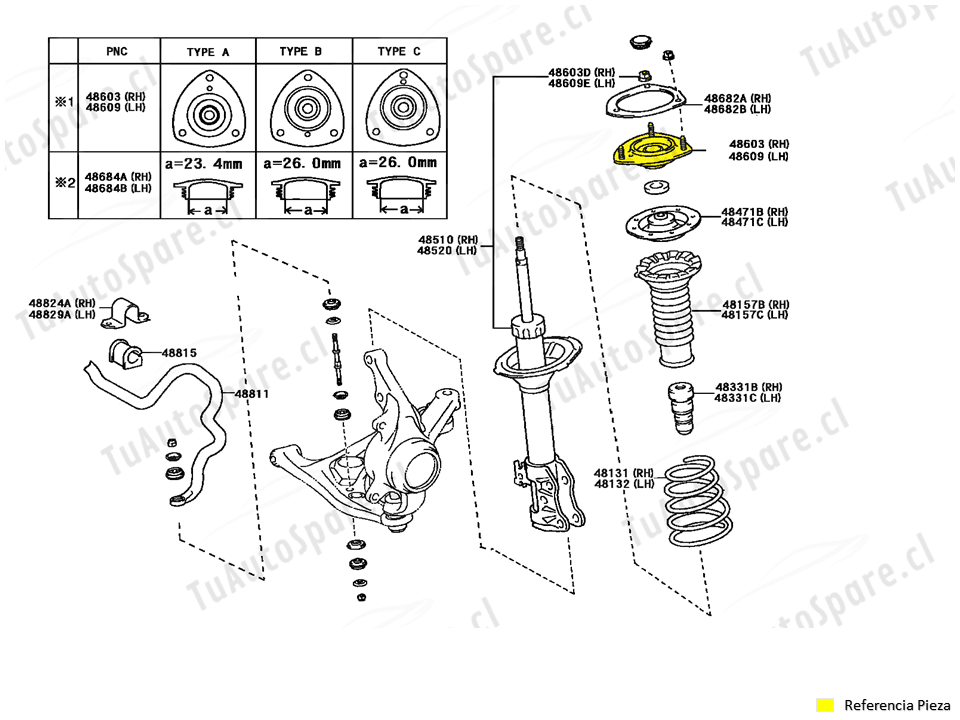 Cazoleta Delantero YARIS (1.5) 2000-2005, Izq/Der 48609-52030