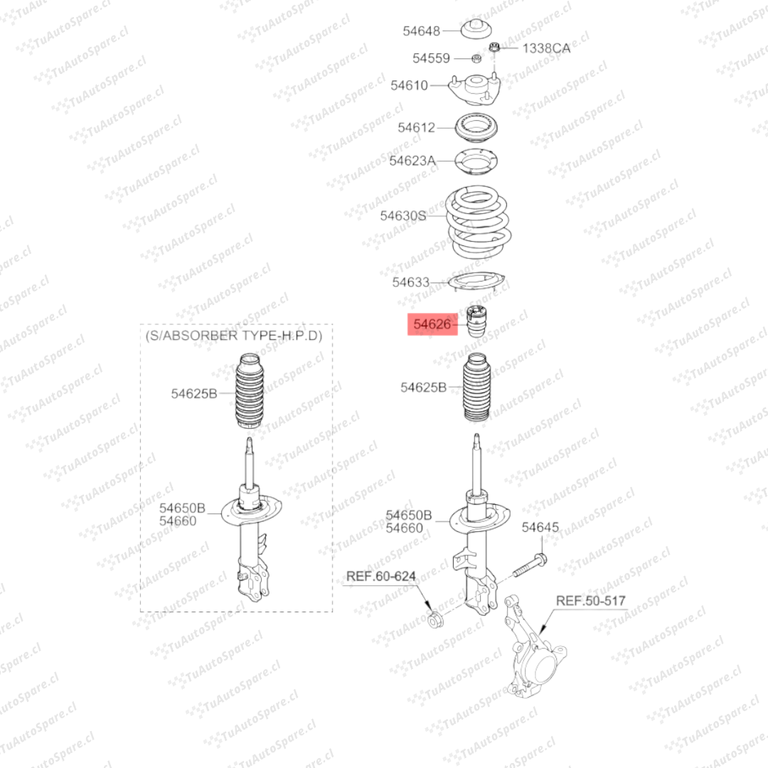 Goma Tope Amortiguador Trasero TUCSON 2004-2010, Izq/Der 54626-2B000