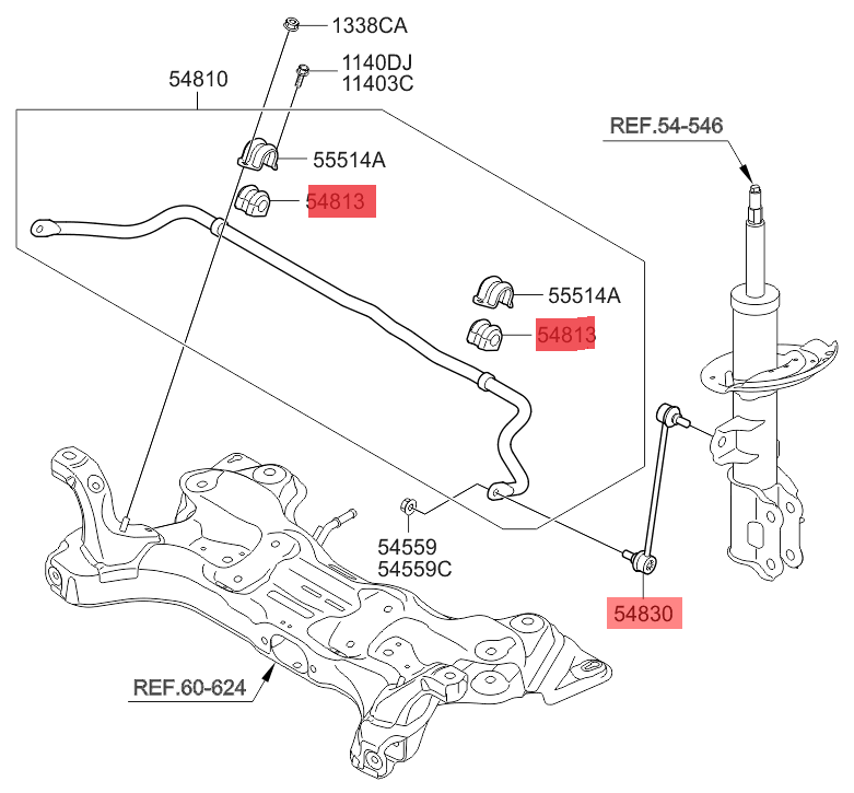 Kit Bieleta + Buje Barra Delantero TUCSON 2013-2016 54830-0U000, 54813-2Y000