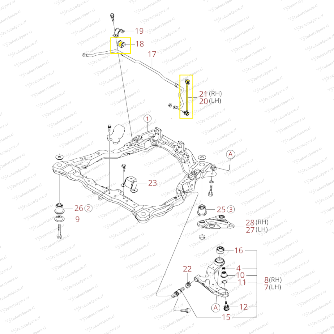 Kit Bieletas + Buje Barra Delantero CERATO 2004-2009 54830-2F000, 54840-2F000, 54813-2F000