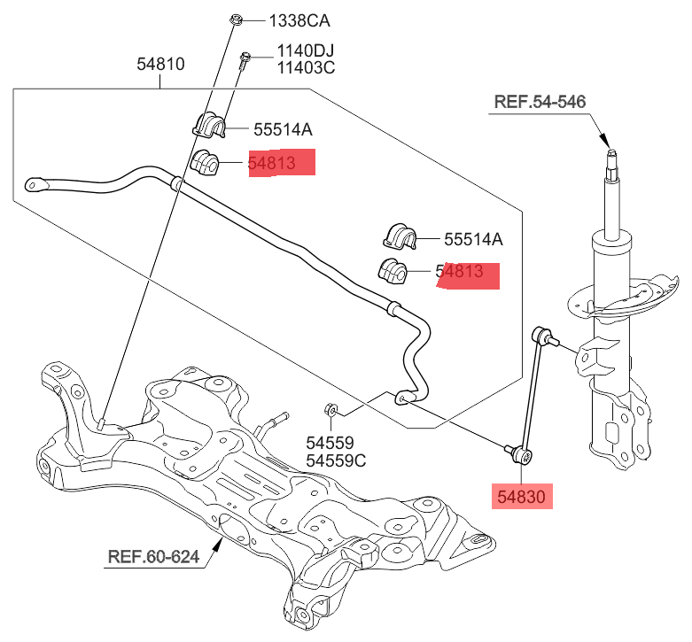 Kit Bieletas + Buje Barra Delantero i30 2012-2016 54830-0U000, 54813-3X000
