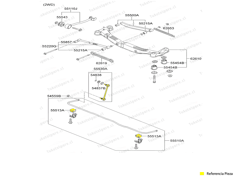 Kit Bieletas + Buje Barra Trasero TUCSON 2004-2010 55530-2E100, 55513-2E100