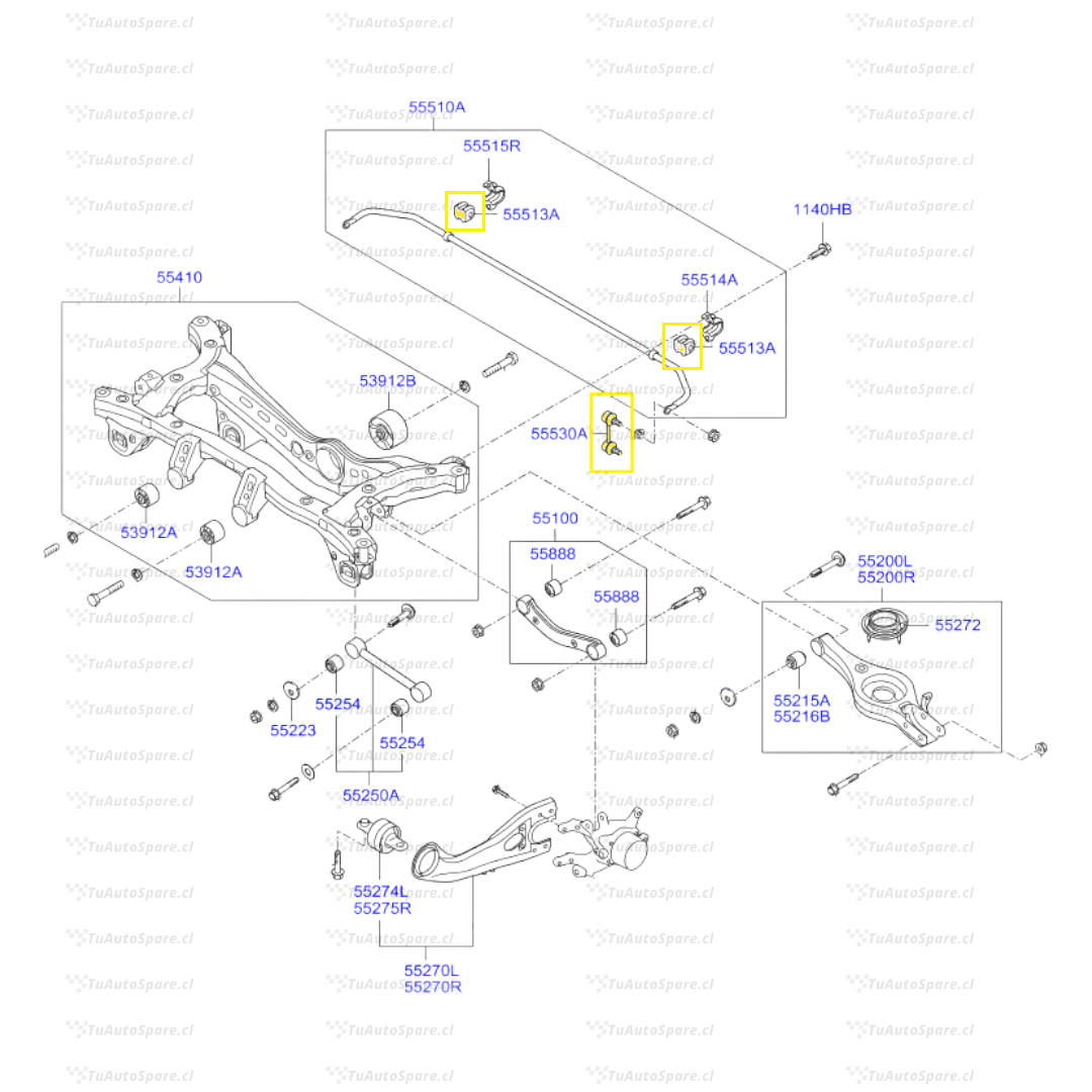 Kit Bieletas + Buje Barra Trasero TUCSON (4WD) 2012-2015 55530-2S200, 55513-3N200