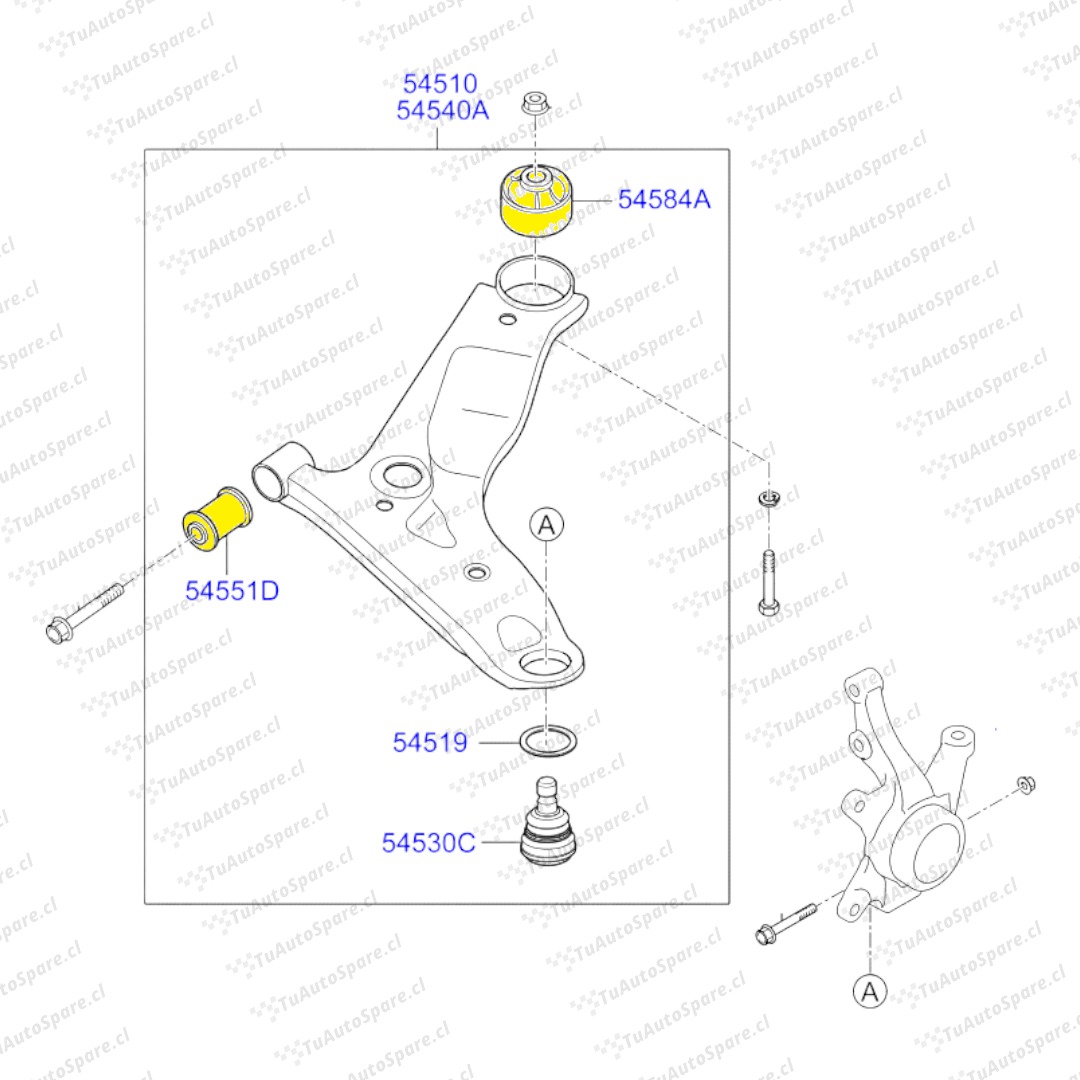 Kit Bujes Bandeja Inferior Delantera ATOS 2020-2022 54584-0Q000, 54551-1J000