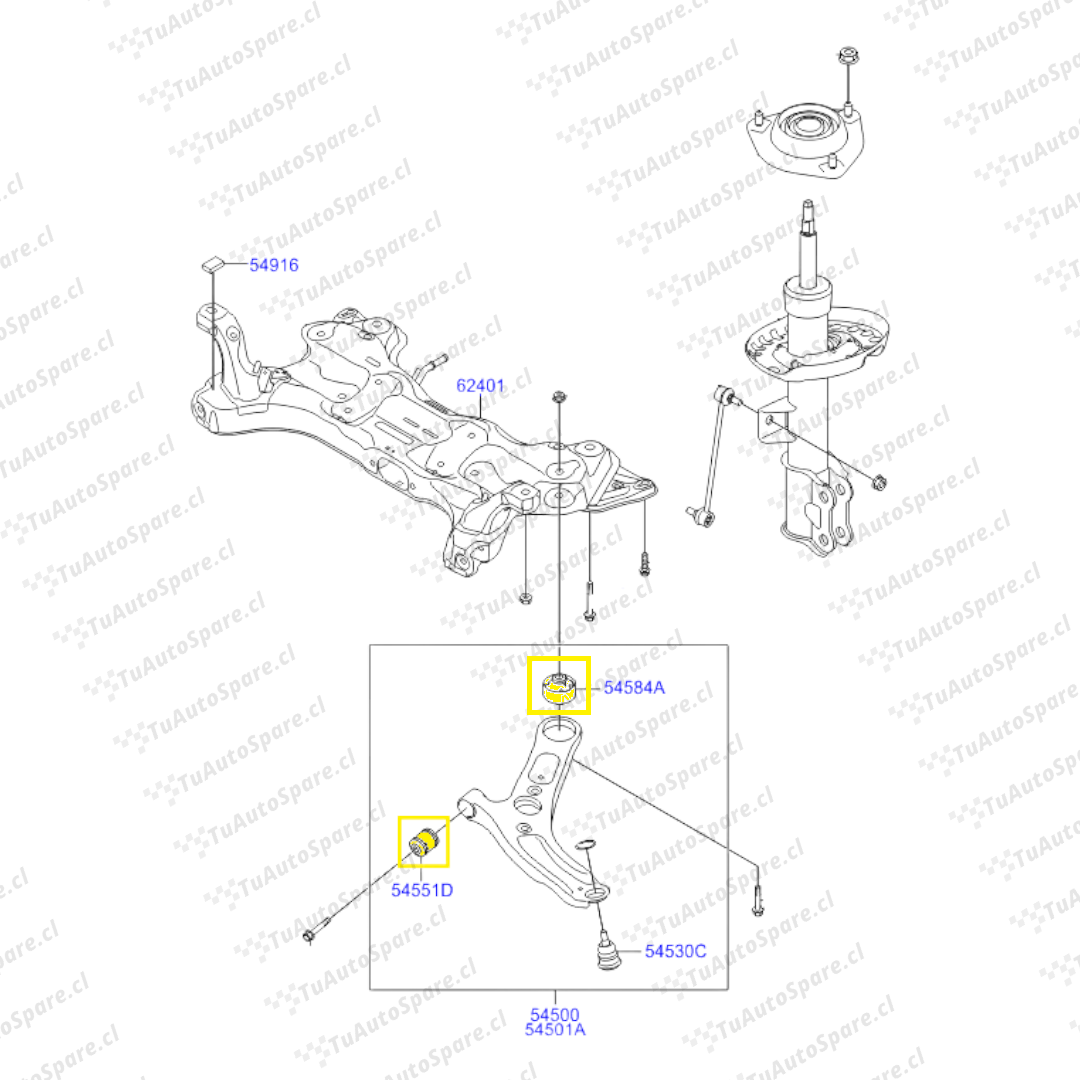 Kit Bujes Bandeja Inferior Delantera CRETA 2016-2020 54551-3X000, 54584-4H000