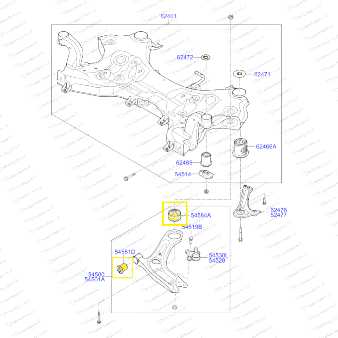Kit Bujes Bandeja Inferior Delantera ELANTRA 2017-2019 54551-3X000, 54584-3X000