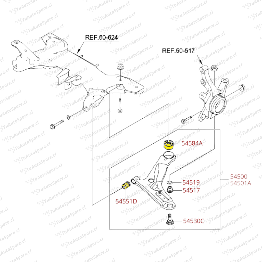Kit Bujes Bandeja Inferior Delantera MORNING 2004-2011 54551-1J000, 54584-0Q000
