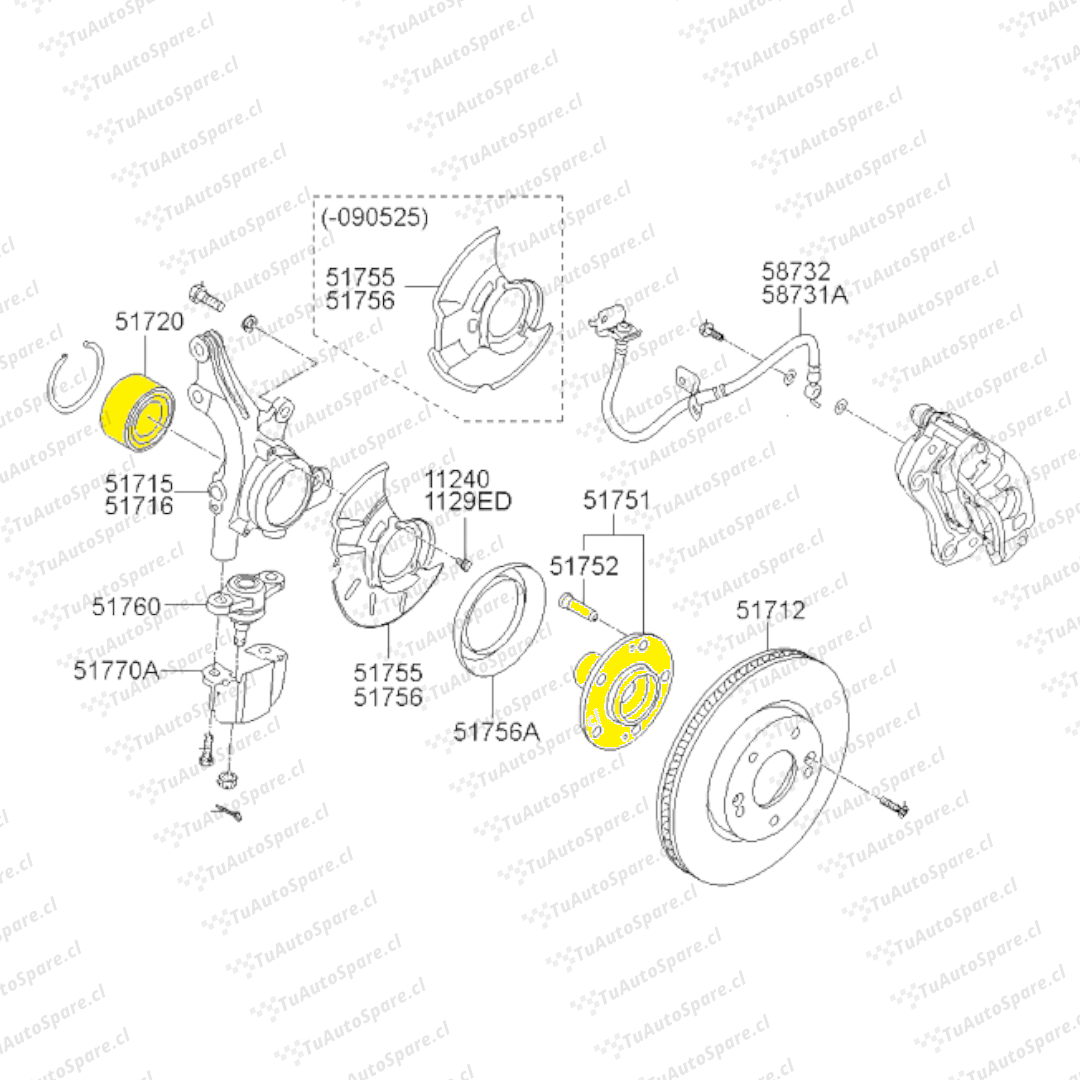 Kit Maza + Rodamiento Delantero ELANTRA 2007-2011 51750-2H000, 51720-2H000