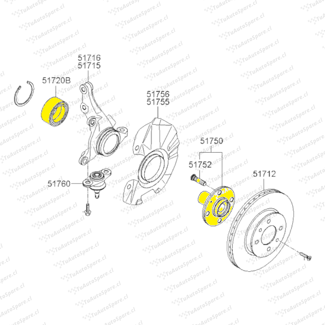Kit Maza + Rodamiento Delantero MORNING 2004-2011 51720-02000, 51750-07001