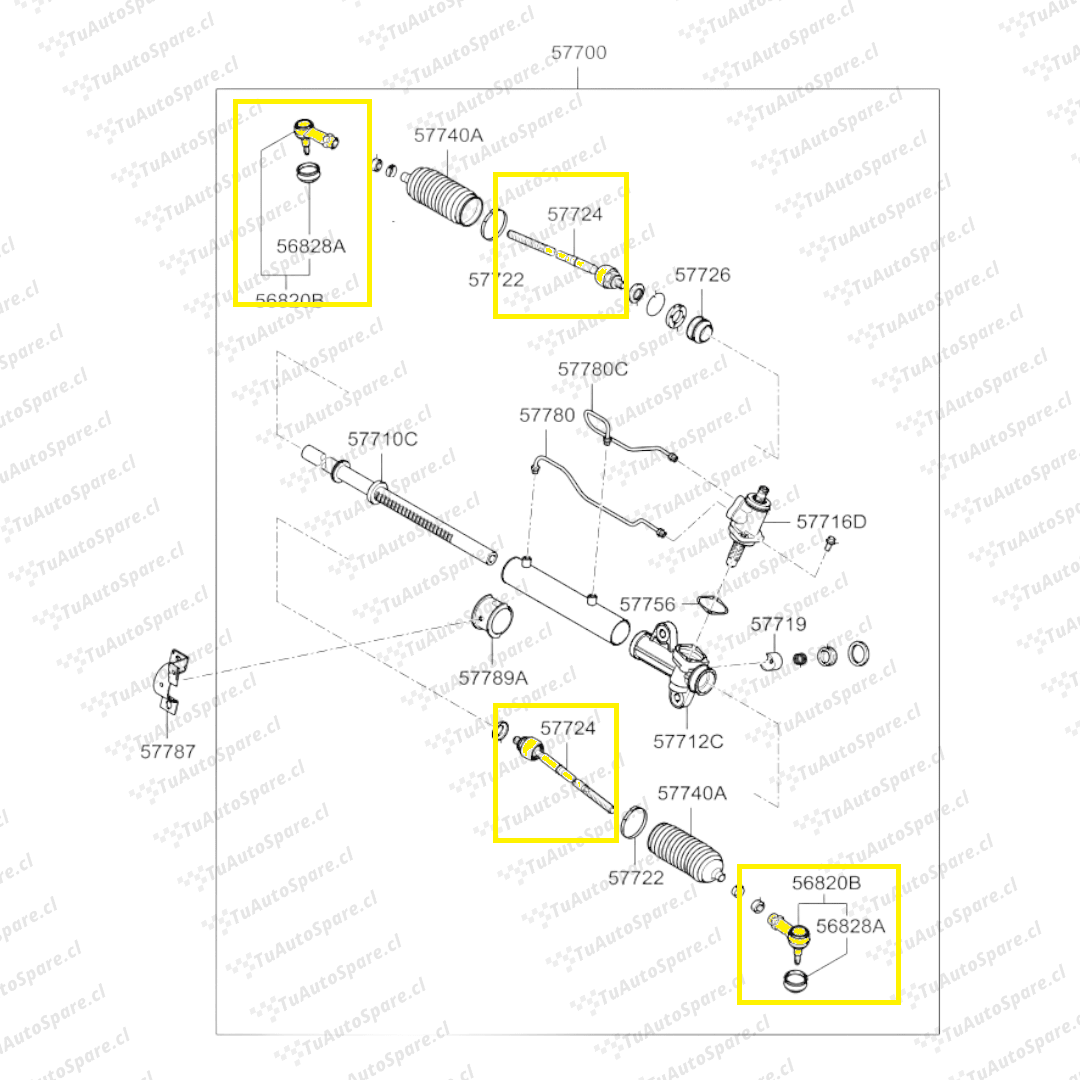 Kit Terminales + Axiales Direccion CERATO 2004-2009 57724-2D000, 56820-25000