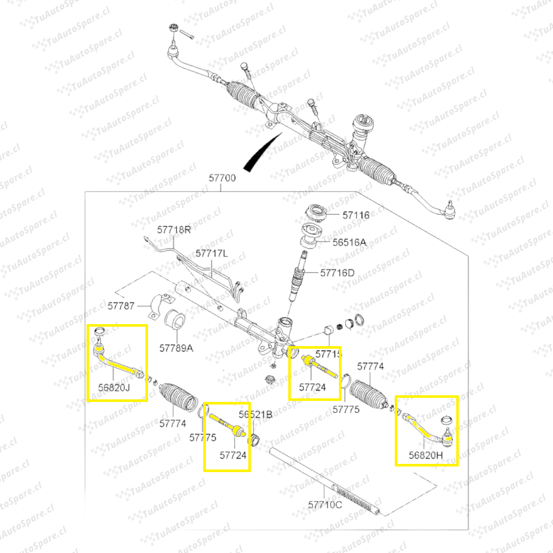 Kit Terminales + Axiales Direccion CERATO 2010-2013 57724-1M000, 56820-2H000, 56820-2H090