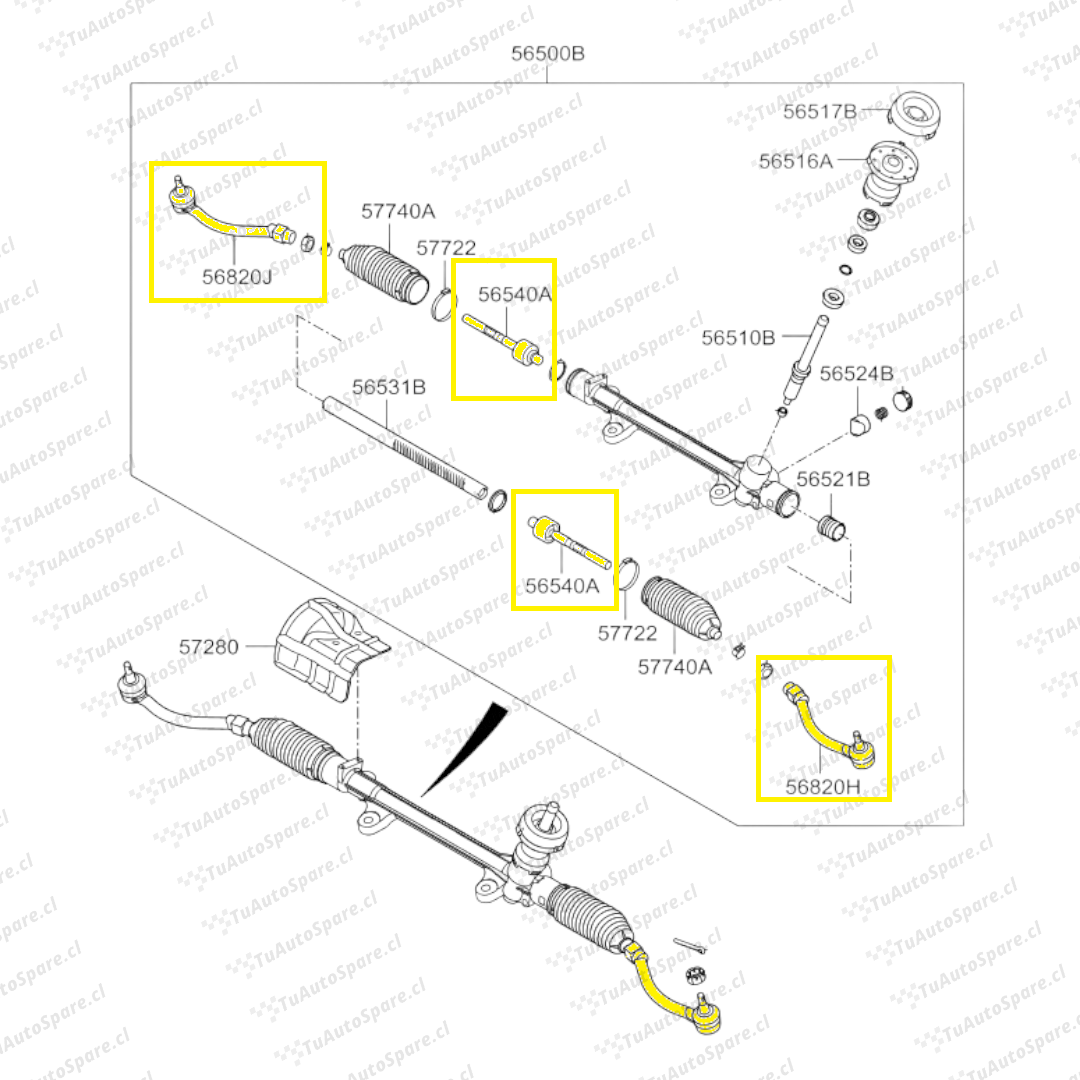 Kit Terminales + Axiales Direccion CERATO 2013-2018 56540-A7000, 56820-A7500, 56825-A7500