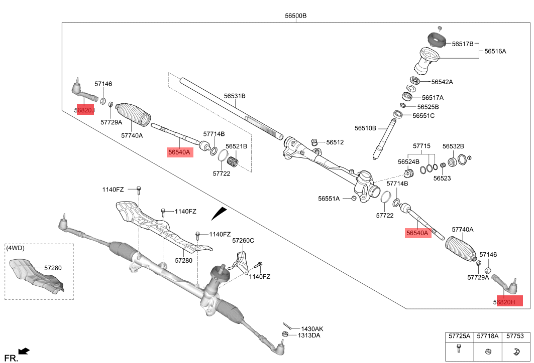 Kit Terminales + Axiales Direccion CERATO 2019-2022 56540-F2000, 56820-F2000, 56825-F2000