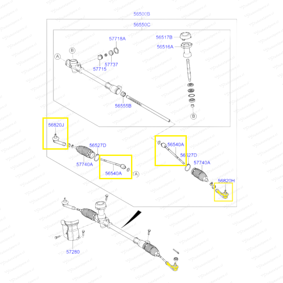 Kit Terminales + Axiales Direccion i10 2015-2021. PAR 56540-B4000, 56820-B4000, 56821-B4050