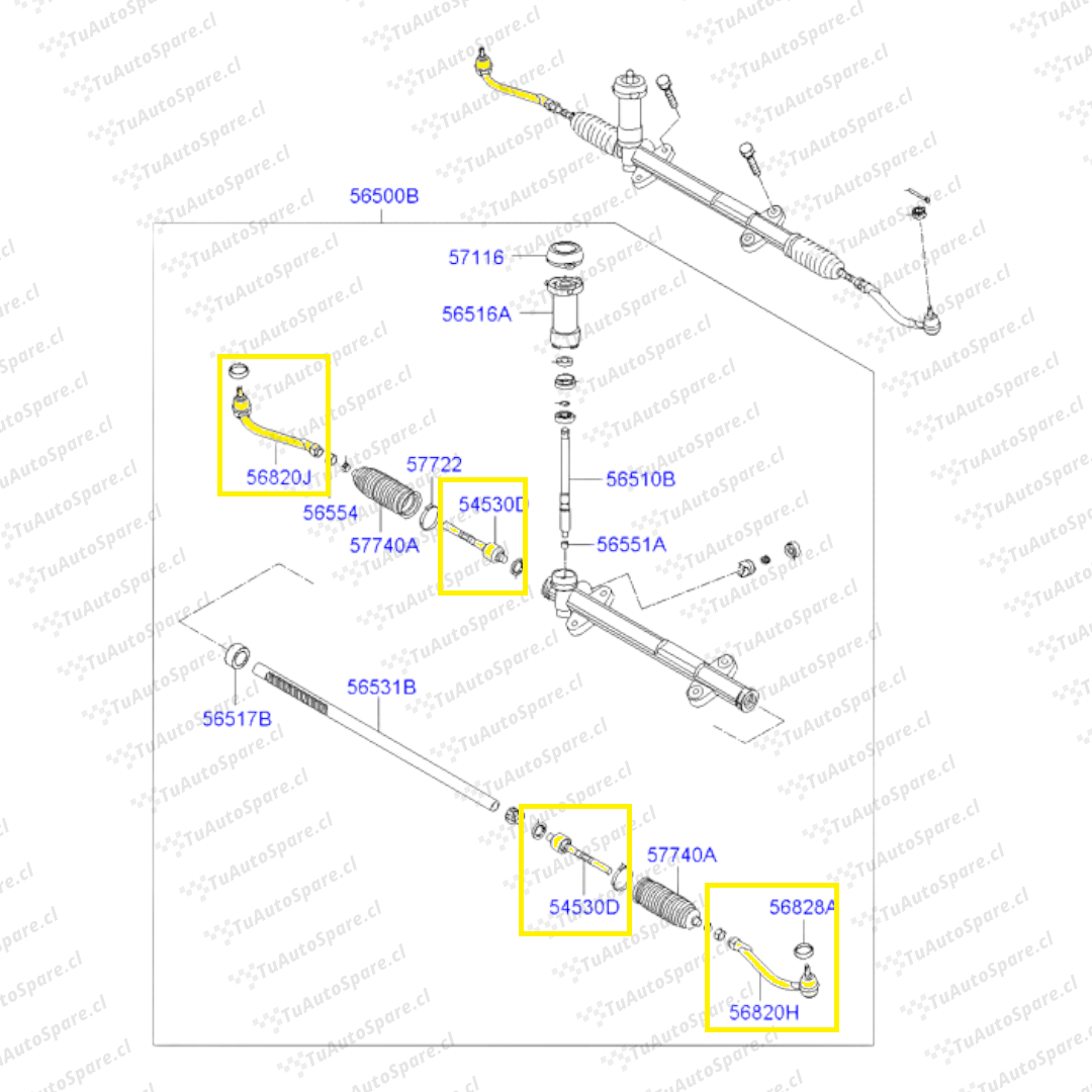 Kit Terminales + Axiales Direccion i30 2007-2011. PAR 56540-2H000, 56820-2H000, 56820-2H090